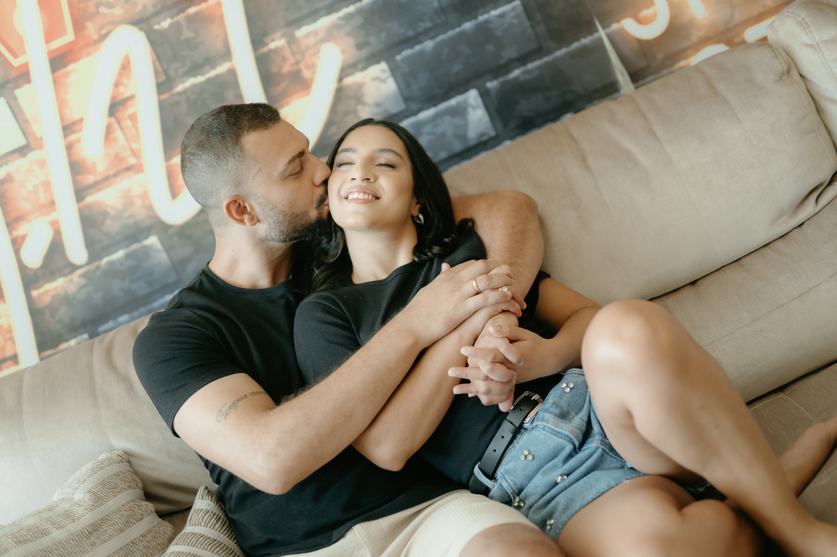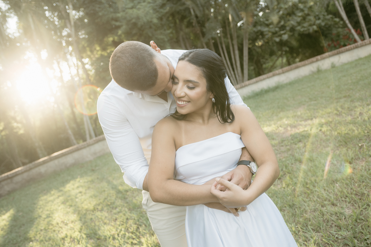 Entre risos e pipoca no sofá de casa, Jéssica e Guilherme celebraram o amor nos detalhes do cotidiano. No jardim onde constroem sua história, foram abraçados por um pôr do sol dourado , testemunha silenciosa de um amor leve, sereno e cheio de verdade.